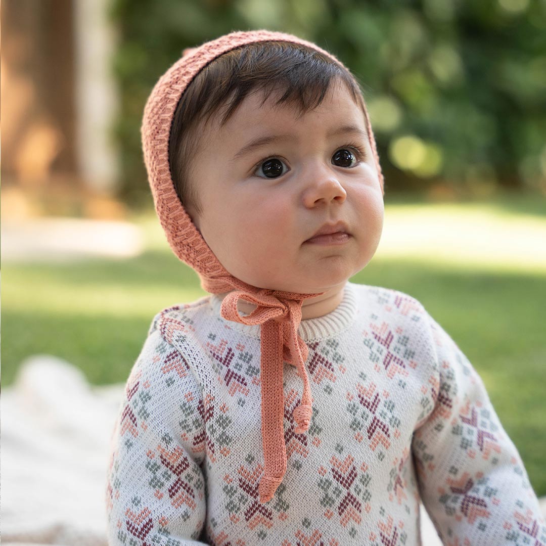 - Completa el look con nuestros gorritos, capotas y patucos. ¡Los colores granate, verde musgo y coral le van de maravilla!