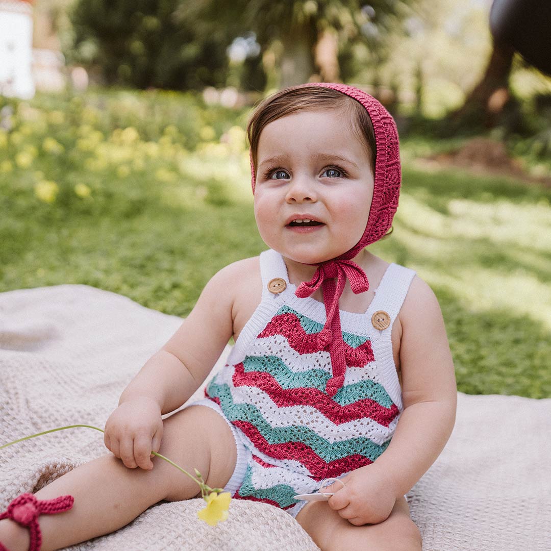 - Ranita UNISEX de punto de la colección Yume en tonos guinda, aguamarina y blanco que hacen un zigzag arriesgado pero que te robará el corazón.