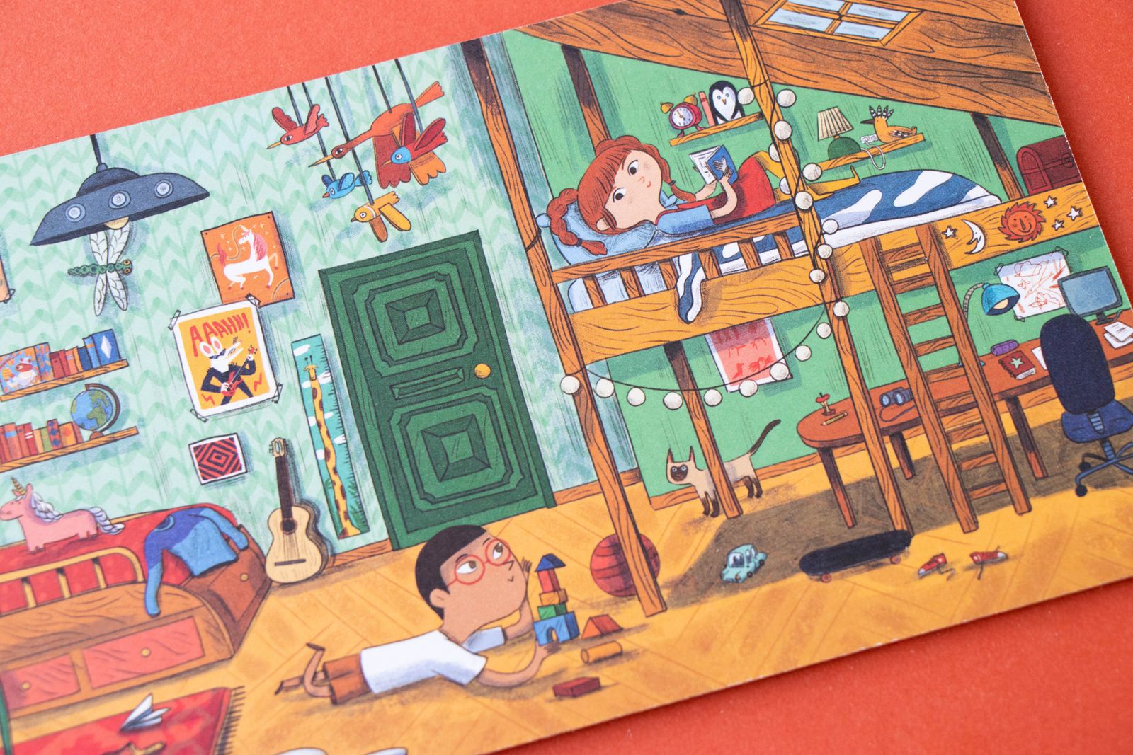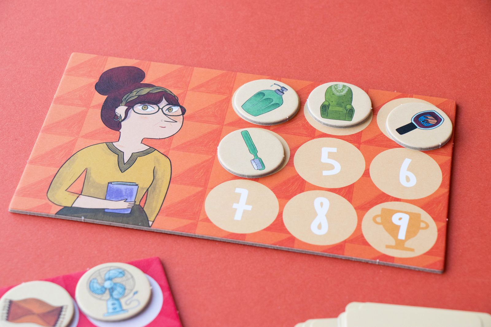 El jugador busca las fichas de objeto que le aparecen en su habitación. ¡El primero en recoger los 15 objetos de su espacio gana!
