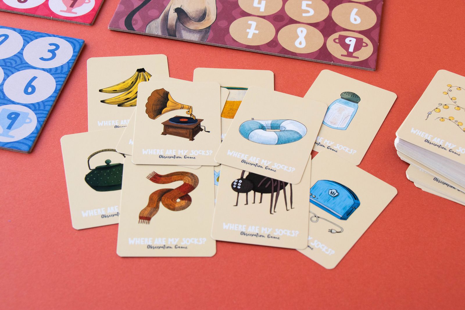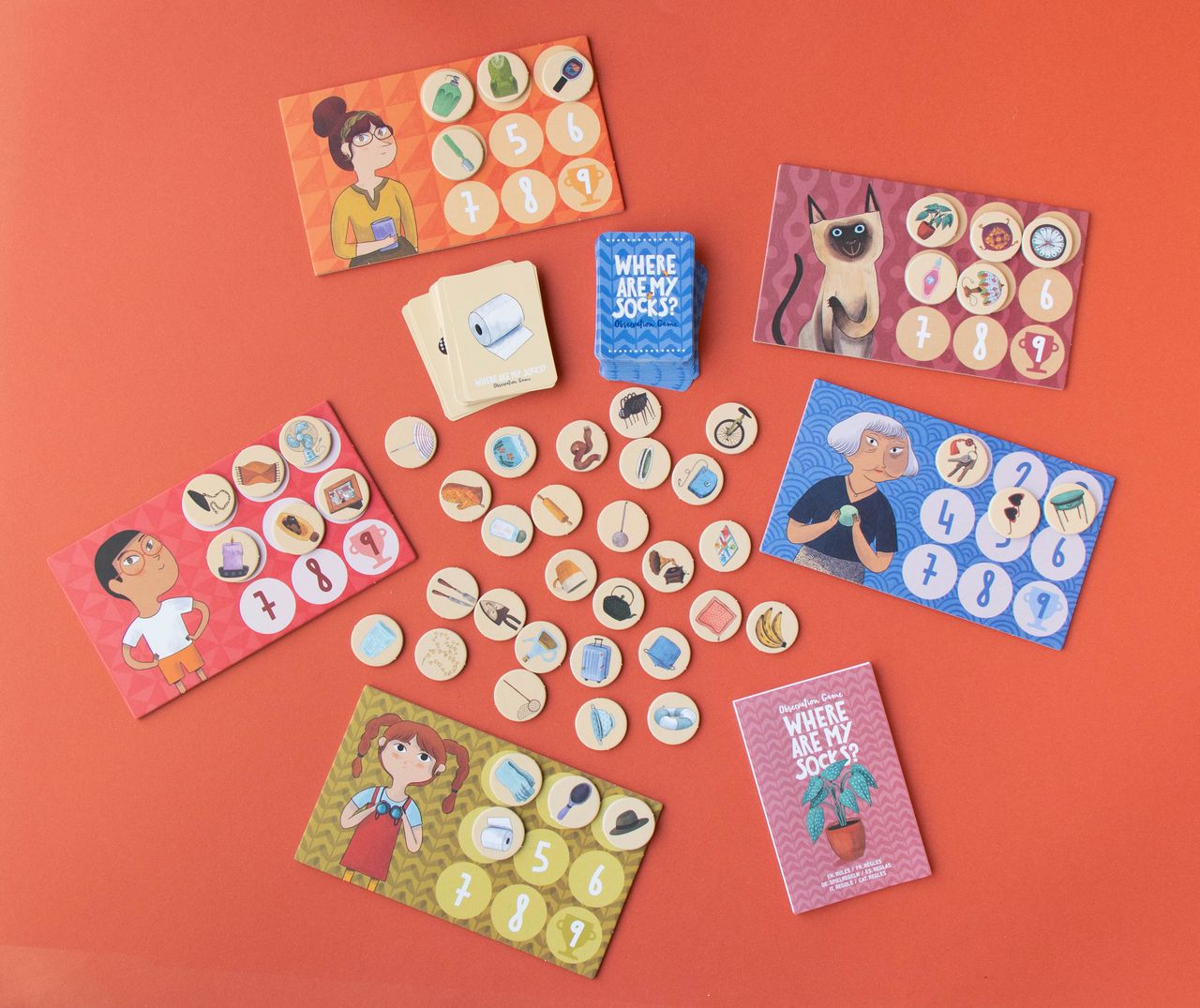Todos los jugadores a la vez buscan el objeto entre las fichas. El más rápido en encontrarlo, lo coloca sobre su cartón de personaje. ¡El primero que recoge 9 objetos gana!