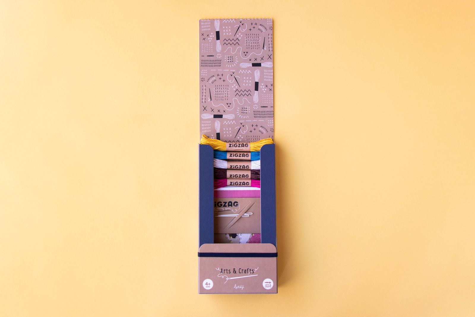 Un juego de bordado con todo lo necesario para aprender a coser: lana de colores, 2 agujas que no pinchan y 8 plantillas de cartón. Para niños y niñas desde 4 años.