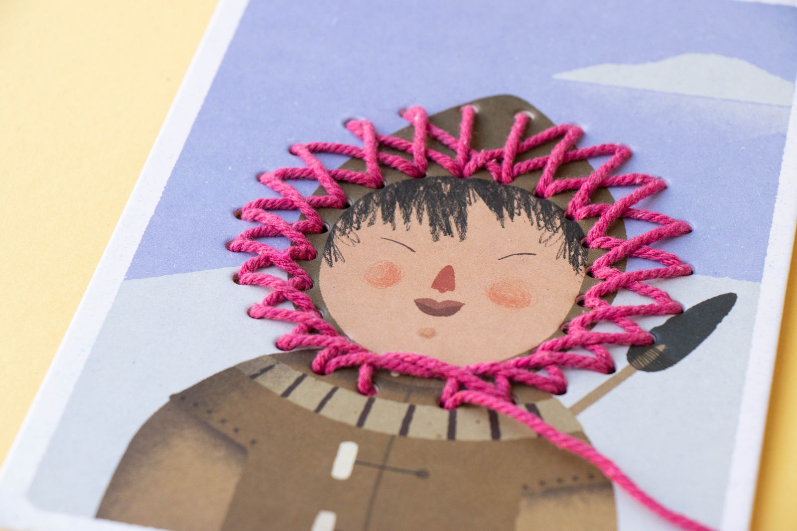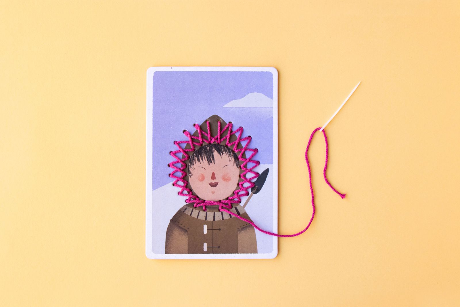 Cosiendo descubrirás las imágenes de un marinero que ha navegado los 7 mares, un valiente esquimal, un lobo feroz y un indio fumando la pipa de la paz.