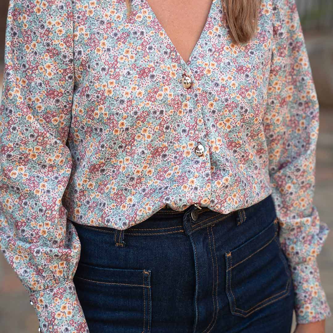 - Camisa en un tejido de viyela del estampado Zaranda. ¡Unas flores que te enamorarán!