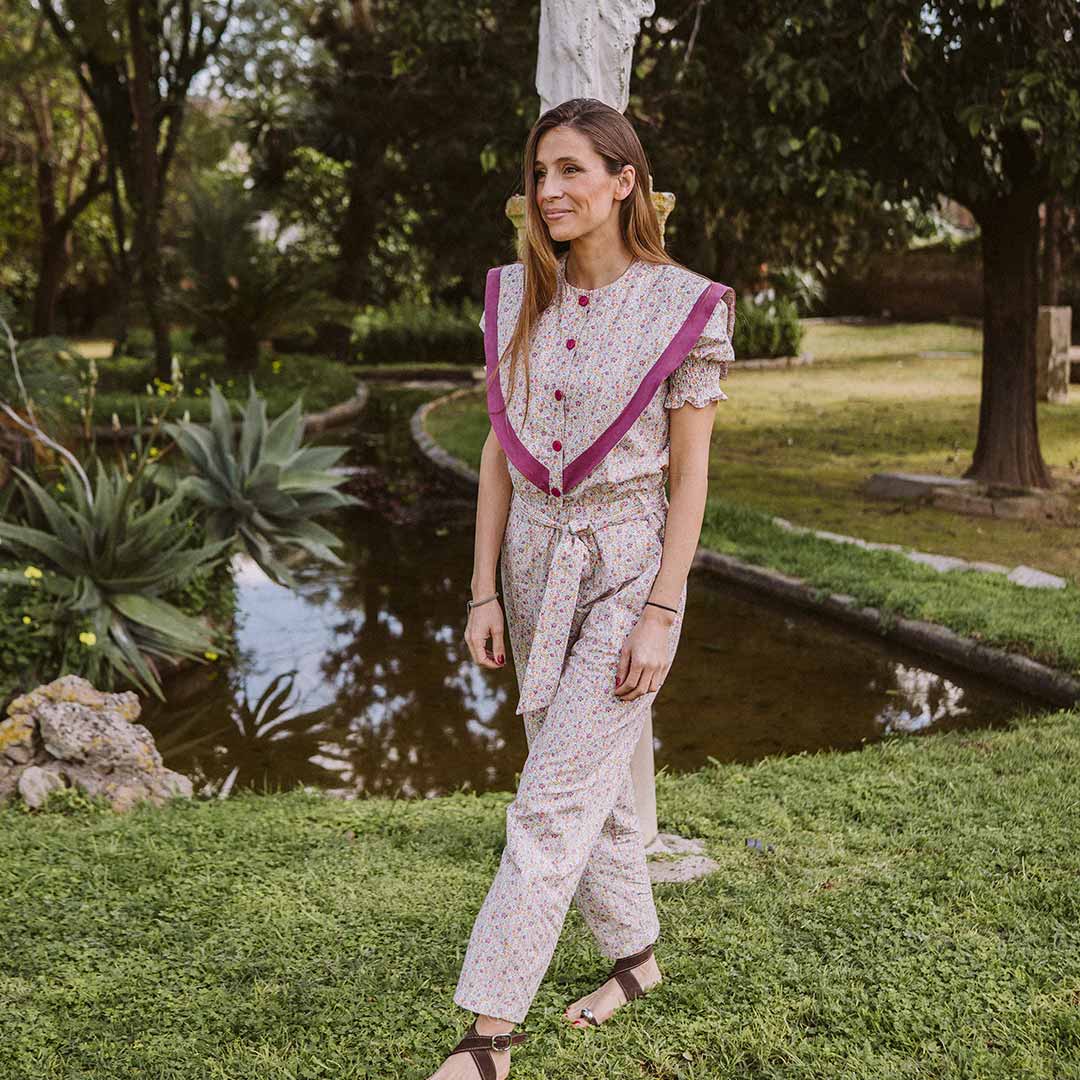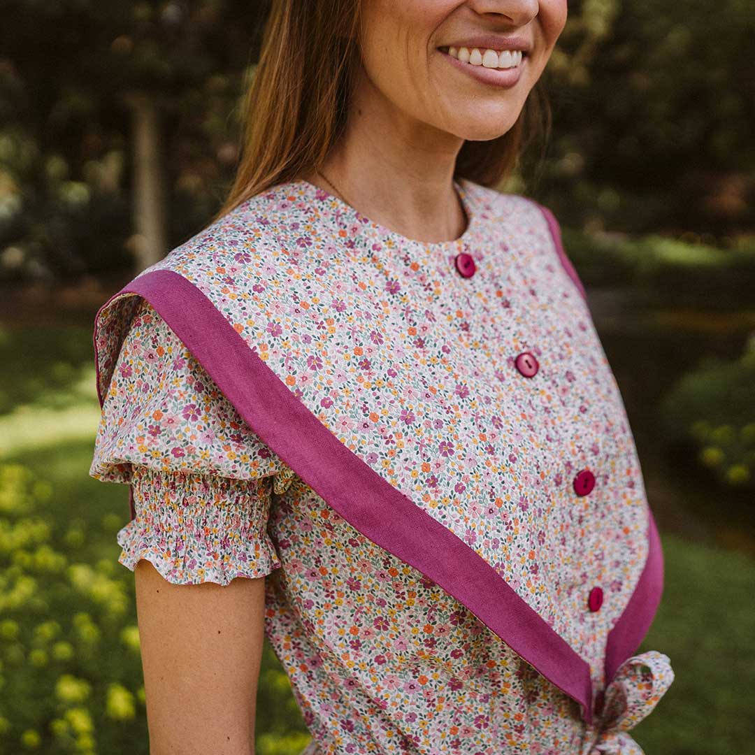 - Detalle de terminado en pico en color buganvilla y agarre de lazo ajustable en la cintura . ¡Un toque súper original!