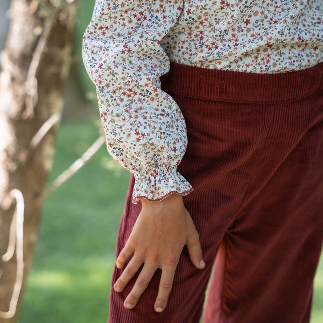 - Combínala con pantalones, petos o faldas. ¡Con la pana granate va genial!