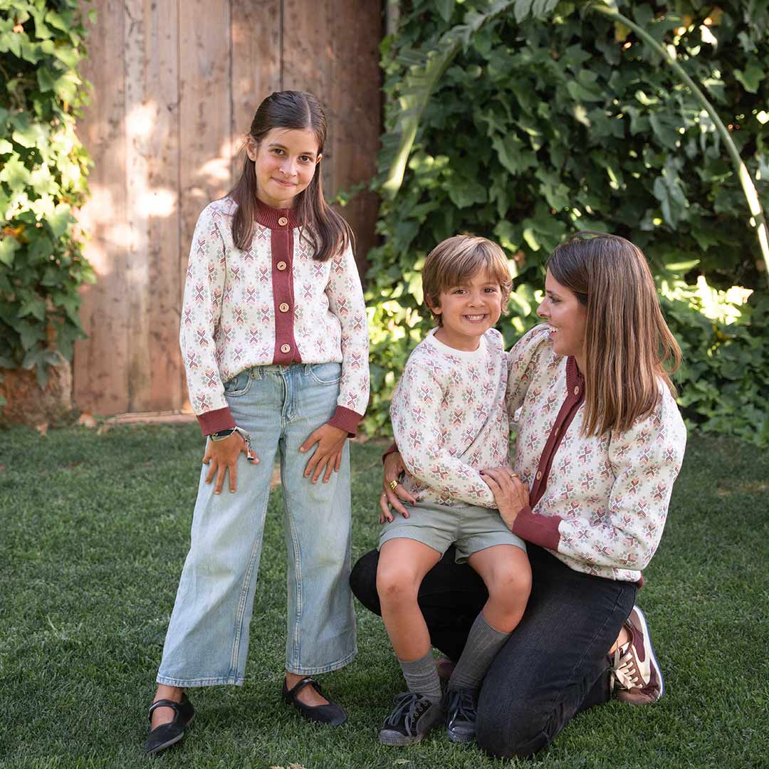 - Jersey en un punto con fondo claro y detalles en coral, granate y verde musgo de lo más ideal para este otoño/invierno.